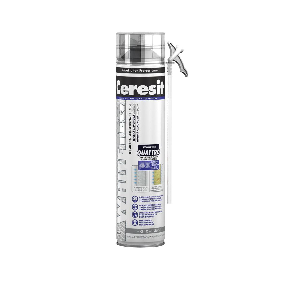 Zwarta struktura wewnętrzna oraz zwiększona odporność mechaniczna sprawiają, że Ceresit WHITETEQ QUATTRO jest doskonałym produktem nadającym się do prac instalacyjnych i montażowych – zarówno wewnątrz, jak i na zewnątrz pomieszczeń. Pianka ma znakomitą przyczepność do betonów, murów, tynków, metali, drewna, styropianu, papieru, powłok malarskich i tworzyw sztucznych (z wyjątkiem polietylenu, teflonu, silikonu).