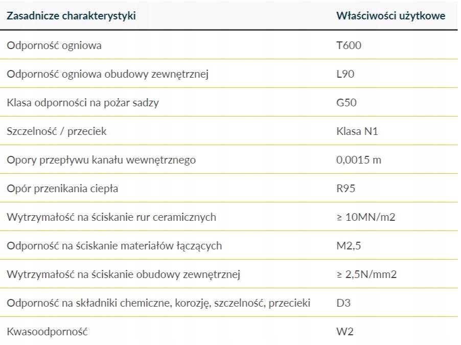 - Komin systemowy posiada całkowitą odporność na występujące w dymie kwasy.