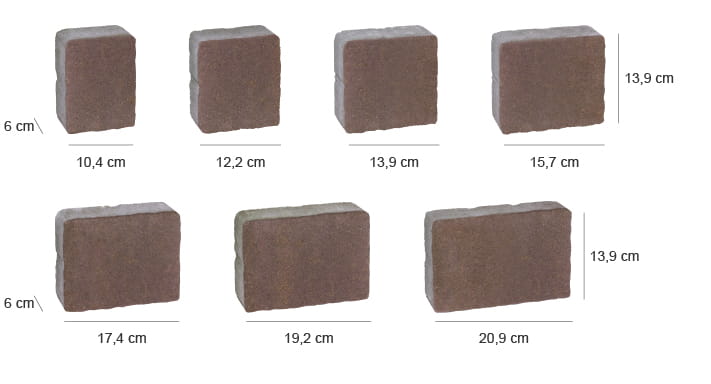 System Akropol tworzą kostki w siedmiu uzupełniających się rozmiarach. Do wyboru mamy kilka ciekawych melanży kolorystycznych. Różnorodne odcienie kostki sprawią, że powstają niepowtarzalne nawierzchnie, które harmonijnie współgrają z otoczeniem.
