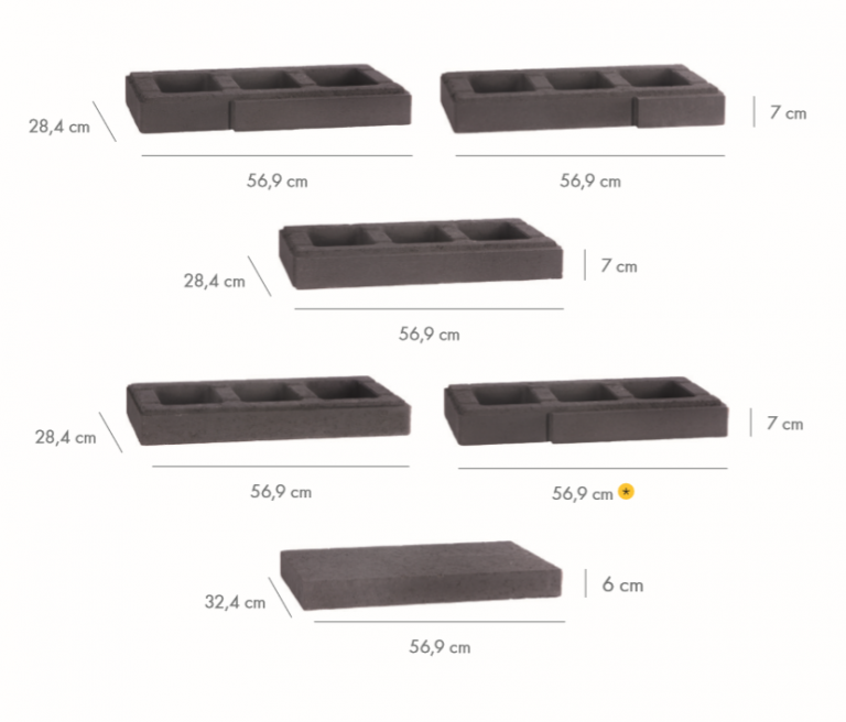 System składa się z kilku zróżnicowanych stylistycznie elementów, które zwieńczone są prostym daszkiem. Poszczególne bloczki posiadają wystające elementy, które można komponować na wiele różnorodnych sposobów. Dzięki temu możemy uzyskać intrygujące ogrodzenie ogrodowe, które będzie wyróżniać się na tle innych, jednolitych murków.