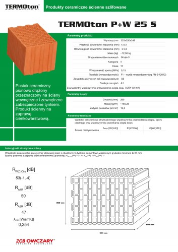 Wysoko drążony pustak ceramiczny TERMOton P+W 25 S (szlifowany) na zaprawę cienkowarstwową (pianoklej).