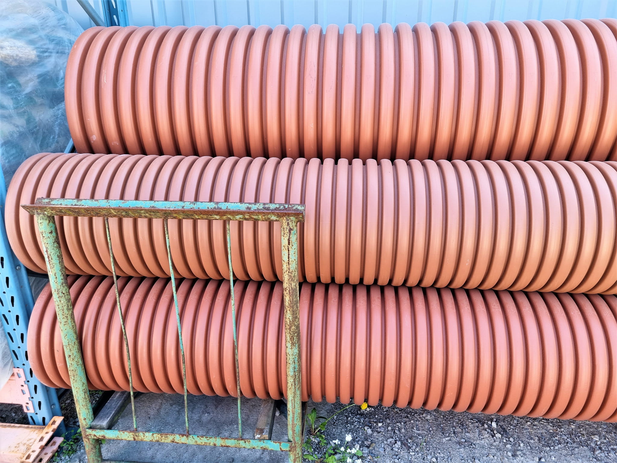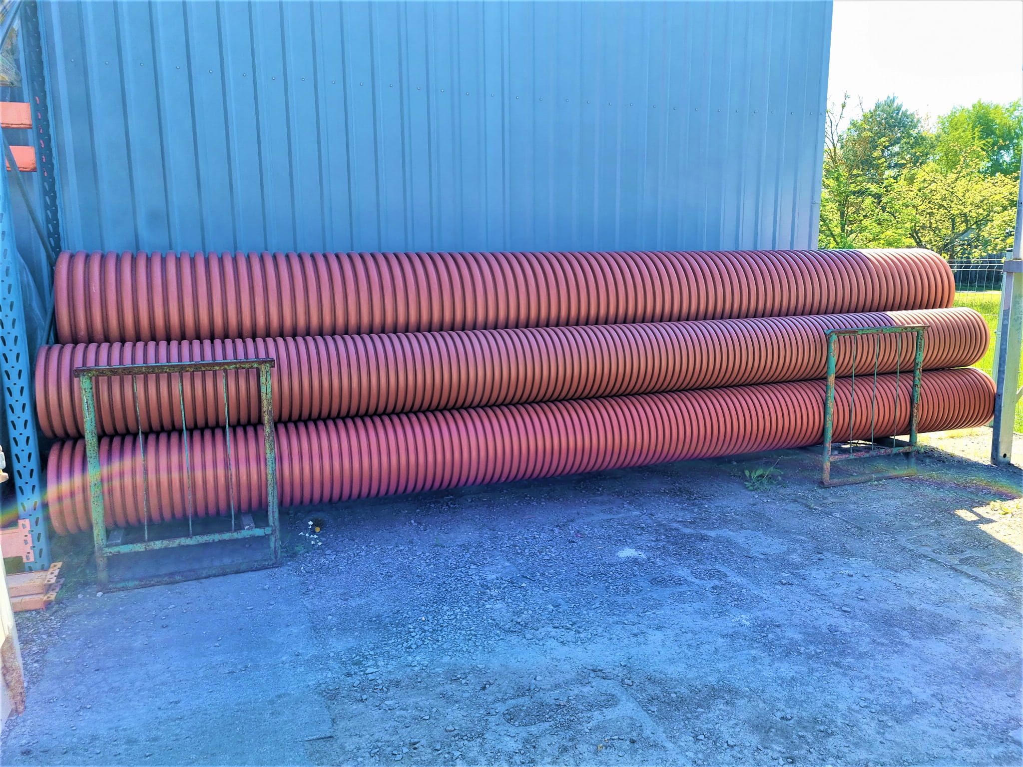Dwuścienne rury kanalizacyjne wysokiej klasy wytrzymałości o średnicy 40cm i długości 6m, mają gładką powierzchnię wewnętrzną i karbowaną ściankę zewnętrzną. Rury doskonale sprawdzają się jako przepusty drogowe pod wjazdy i mostki oraz mogą być stosowane w rolnictwie, budownictwie wodno-melioracyjnym, w kanalizacji do budowy rurociągów odprowadzających, systemach drenarskich oraz jako rury osłonowe w telekomunikacji i energetyce.