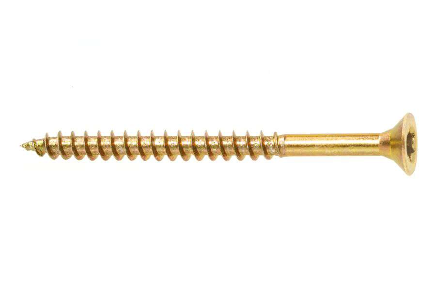 Wkręt hartowany do połączeń elementów drewnianych i drewnopochodnych z niepełnym gwintem i łbem stożkowym płaskim.