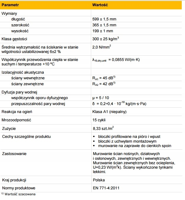 Najlepszą izolacyjność spośród materiałów konstrukcyjnych o wytrzymałości 2 N/mm2,