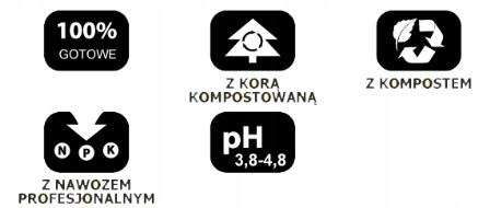 Podłoże dzięki właściwemu pH (3,8-4,8) zapewnia optymalne warunki do wzrostu oraz owocowania borówki wysokiej i żurawiny zwiększając jednocześnie odporność roślin. Produkt prasowany mechanicznie, przed użyciem zaleca się rozluźnić i w miarę potrzeb, gdy podłoże jest suche, nasączyć wodą.