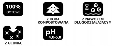Specjalna ziemia do uprawy roślin kwaśnolubnych w ogrodzie, na tarasach, balkonach i w domu. Profesjonalny nawóz długo działający zapewnia roślinom składniki pokarmowe. Produkt prasowany mechanicznie. Przed użyciem zaleca się go rozluźnić, a gdy podłoże jest suche – nasączyć wodą.